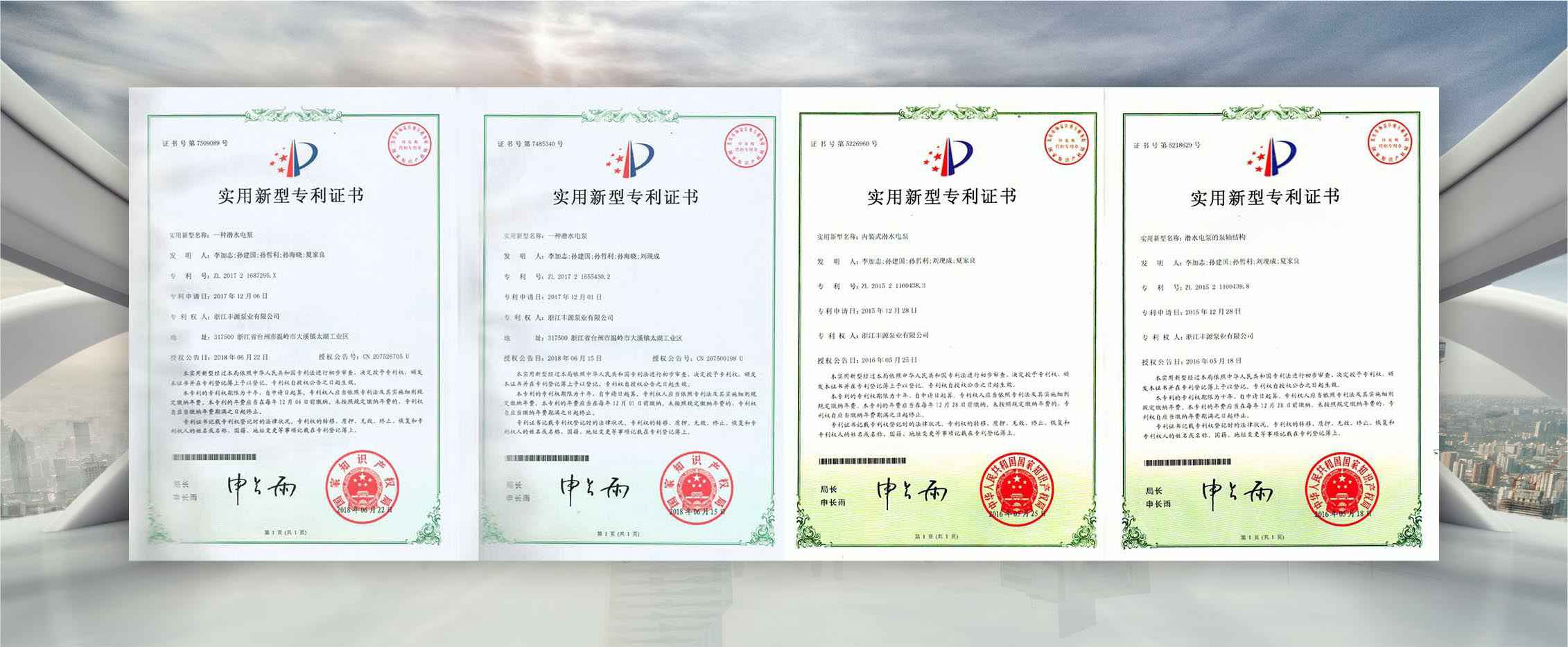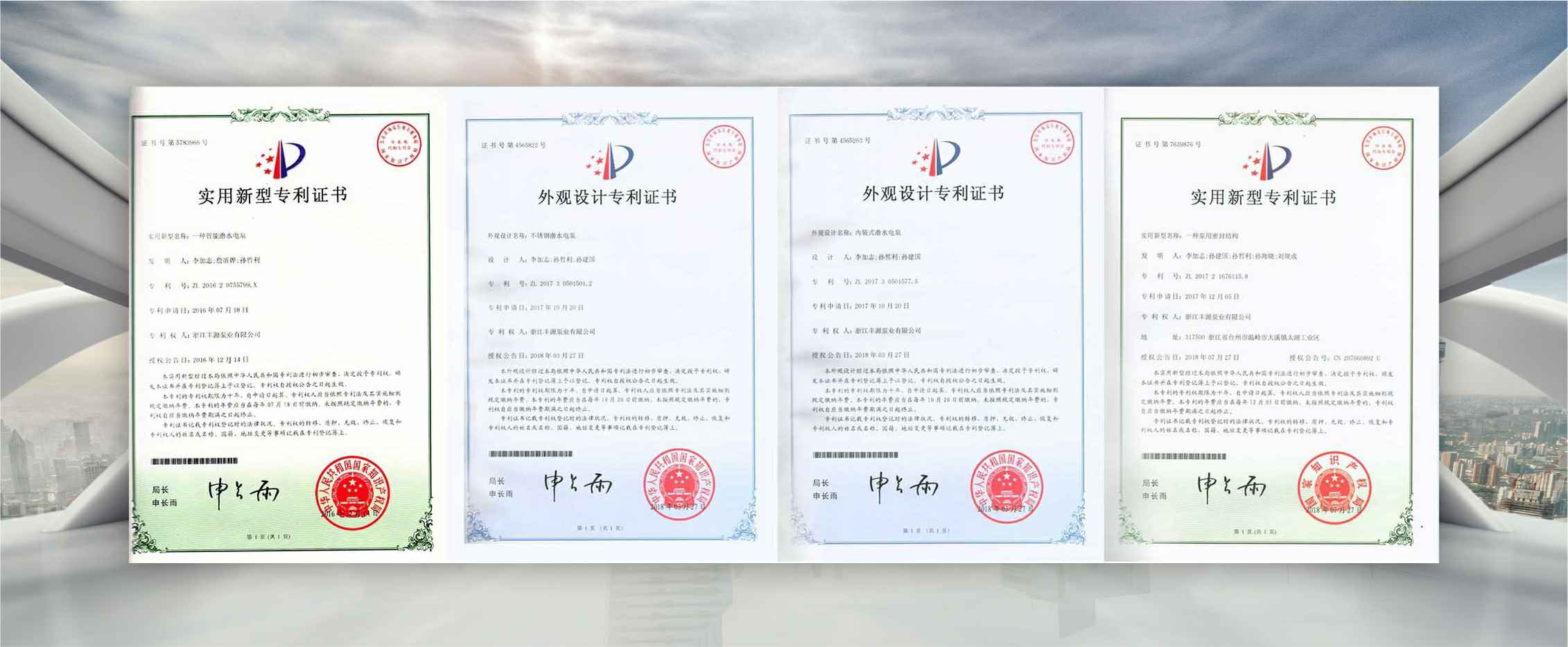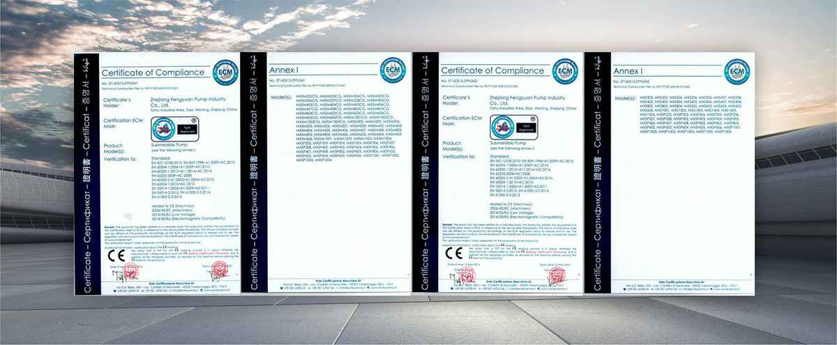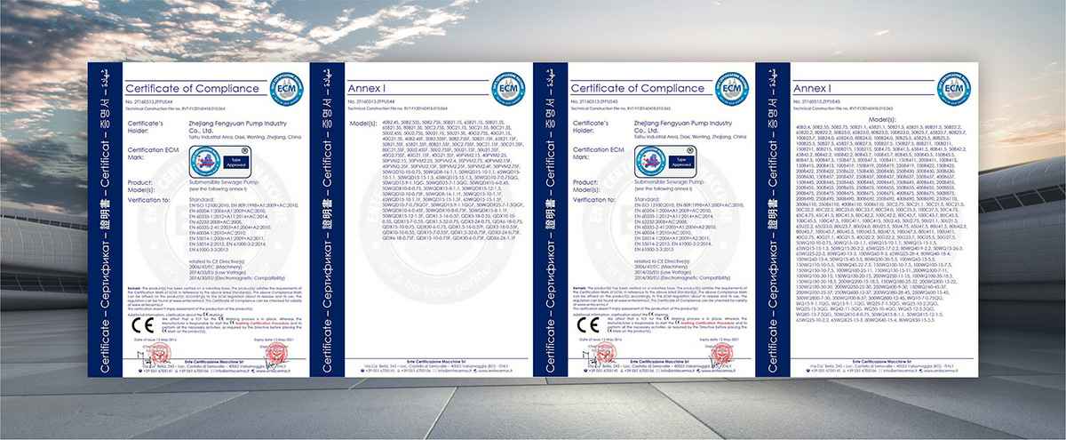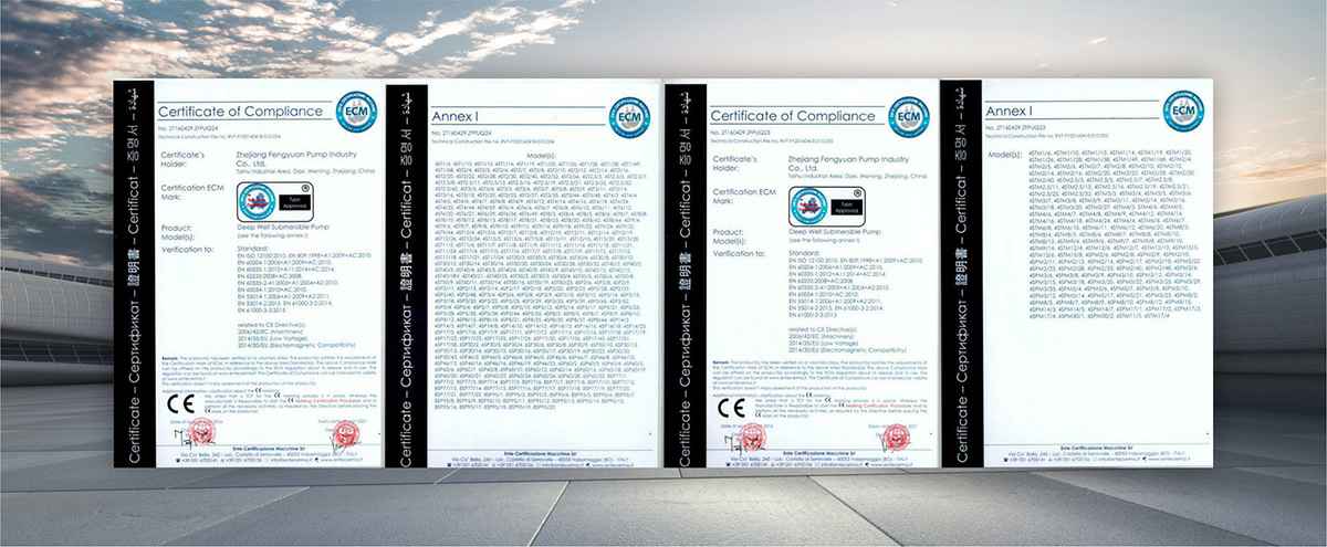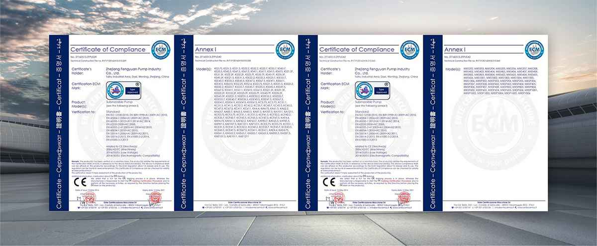 公司是全国农机标委会排灌设备和系统分会委员、是《小型潜水电泵》、《污水污物潜水电泵能效限定值及能效等级》、《井用潜水电泵能效限定值及能效等级》等多项国家标准,以及《大中型潜水电泵》、《水泵综合性能试验台校准规范》等行业标准的主要起草单位之一;公司通过IS09001:2015质量管理体系认证,多个系列产品取得CE、SASO等证书。