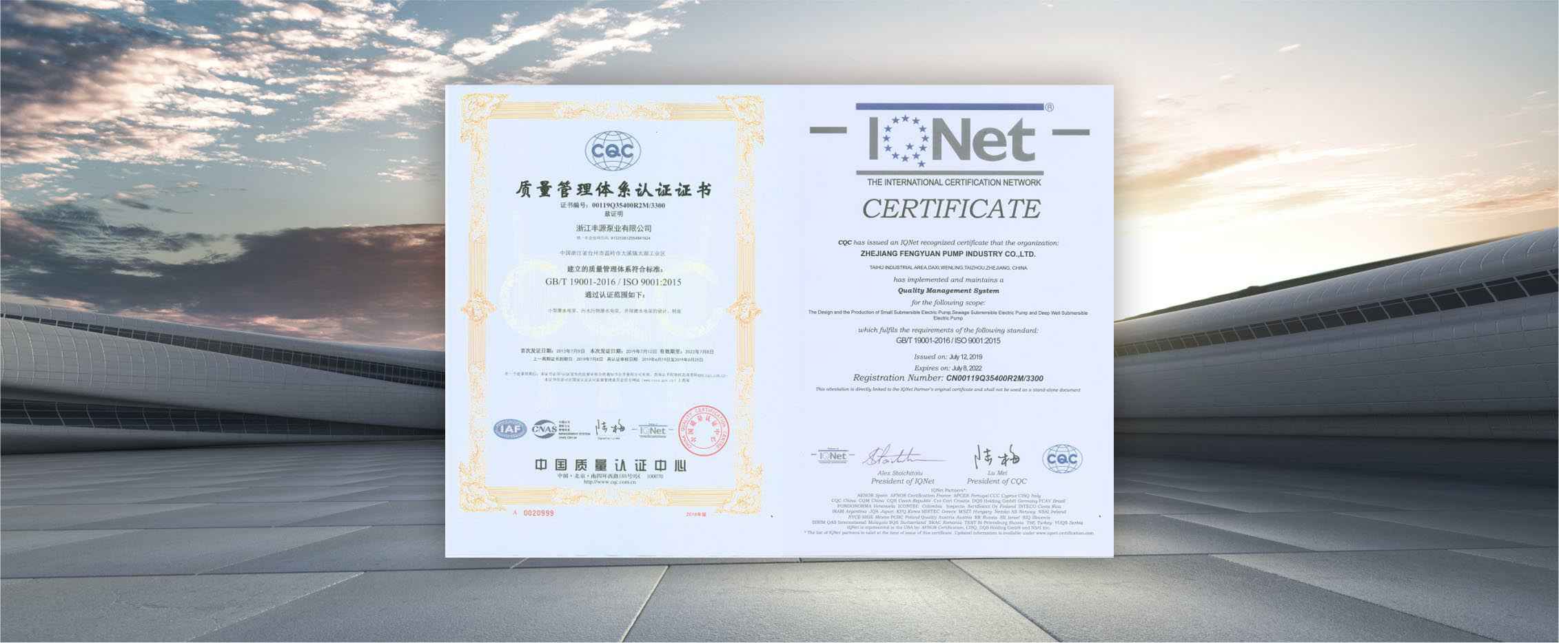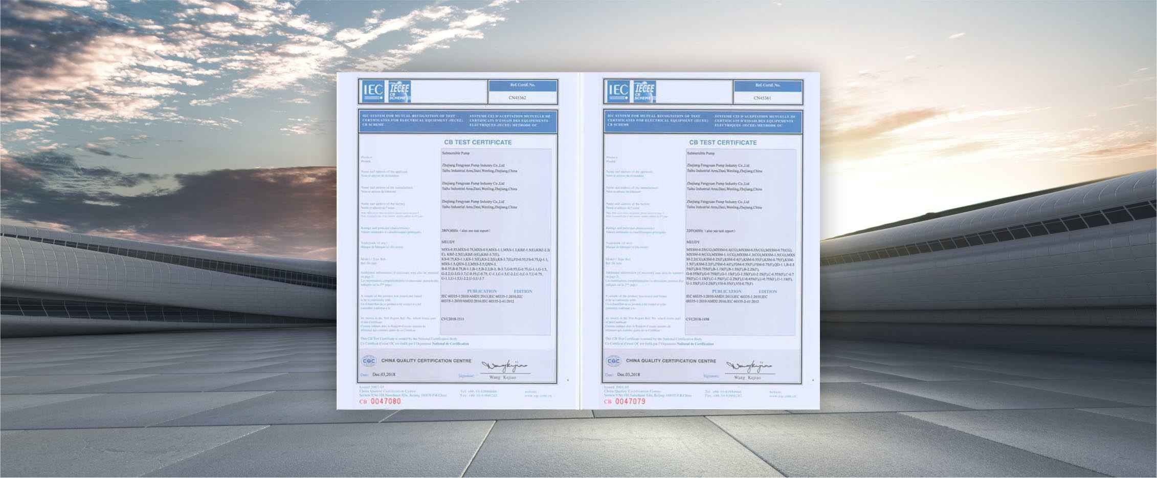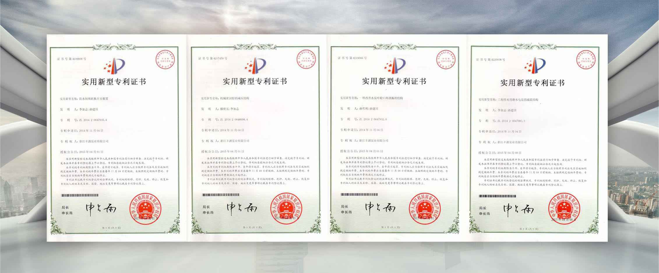 公司是全国农机标委会排灌设备和系统分会委员、是《小型潜水电泵》、《污水污物潜水电泵能效限定值及能效等级》、《井用潜水电泵能效限定值及能效等级》等多项国家标准,以及《大中型潜水电泵》、《水泵综合性能试验台校准规范》等行业标准的主要起草单位之一;公司通过IS09001:2015质量管理体系认证,多个系列产品取得CE、SASO等证书。