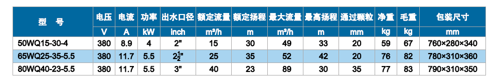 新增 WQ 4~5.5kW双流道潜水排污泵